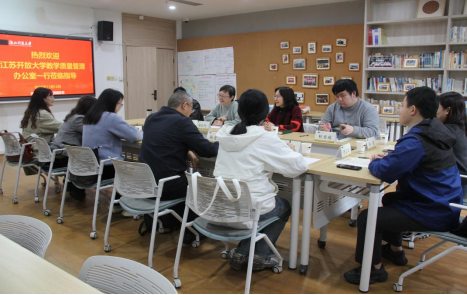 11月12日,江苏开放大学教学质量管理办公室主任张露、副主任麦绣文带领部分骨干成员来校调研教学质量保障体系建设与管理工作情况。教学质量监控与评估中心主任陈红叶、副主任王旭莲,以及监评中心全体成员参加交流。