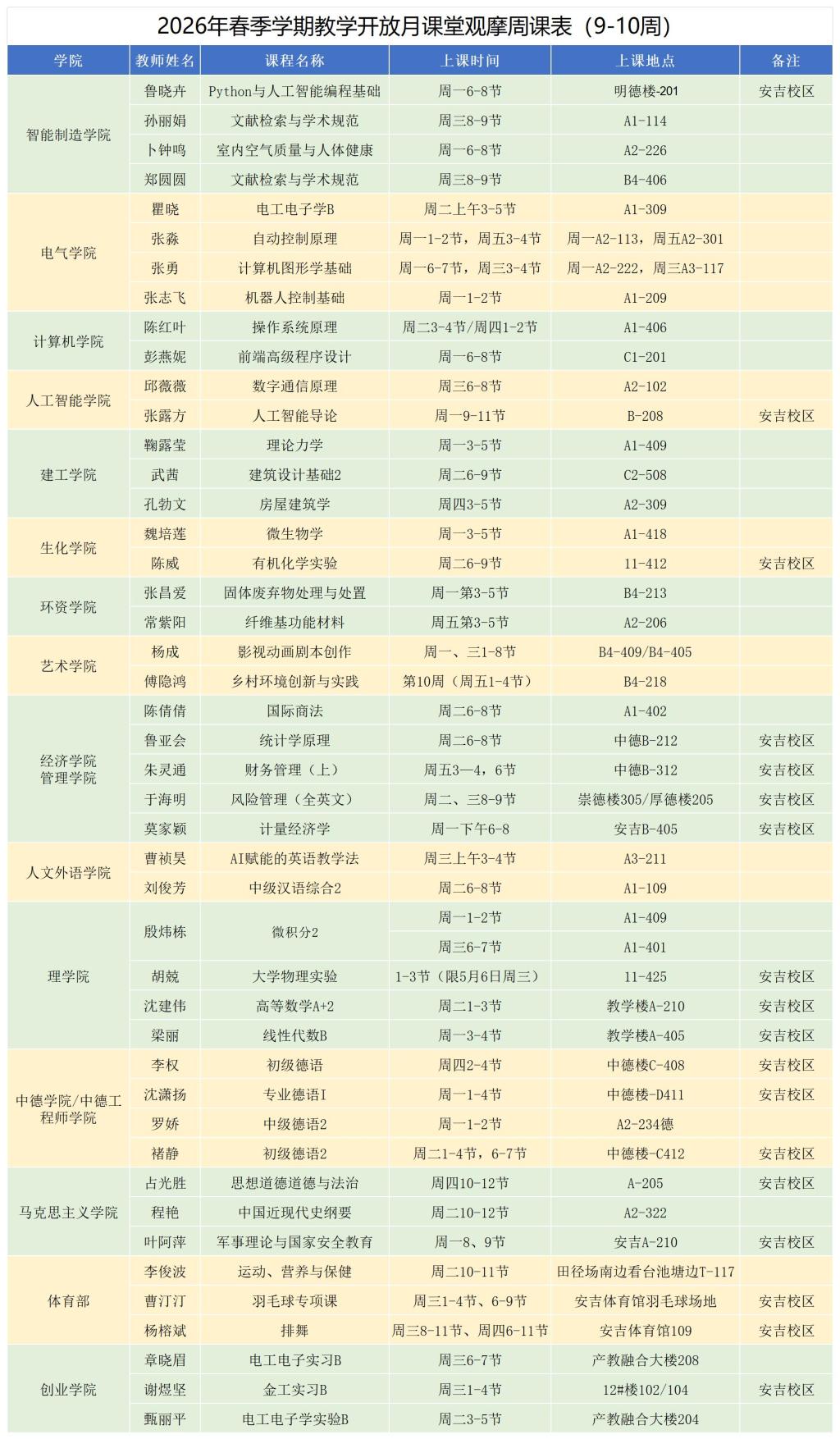 为进一步提升教师教育教学能力与数字素养,促进人工智能技术与课堂教学深度融合,助力青年教师快速成长,发挥优秀教师示范引领作用,营造智慧教学、创新育人的浓厚氛围,本学期教师发展中心继续推出2026年春季学期“教学开放月”活动。本次活动立足开放、共享、合作、提升理念,搭建智慧教学交流研讨平台,探索AI赋能下的教学改革新路径,为全面提升教育教学质量注入新动能。